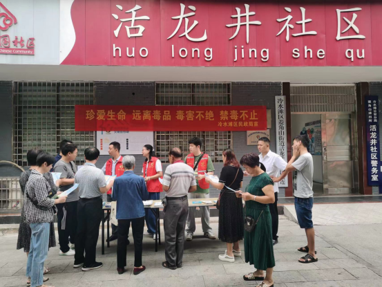 为进一步加大禁毒宣传力度,提高全民识毒、防毒、拒毒意识。9月23日上午,冷水滩区民政局组织志愿者、博益社工走进活龙井社区积极开展禁毒宣传活动。