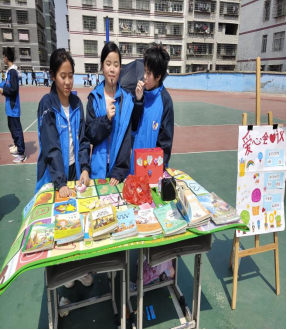 “走过路过不要错过”“看一看,瞧一瞧”……一阵叫卖声从操场飞扬开来。在老师和志愿者的鼓励和带动下, “小售货员们”都使出浑身解数来吸引顾客。每个摊位都各具特色,有的用可爱的毛绒玩具吸引“买主”,有的用 “买书赠玩具”等手段来促销,有的拿着自己的物品流动推销,还有的用才艺吸引“顾客”……操场上人来人往、一派忙碌的景象。