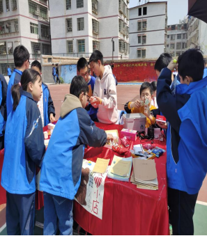 活动现场,同学们以班级为单位,挑选好商铺的位置,布置好自己的铺面,拿出早已准备好的“商品”,一个个小摊子,集中铺满了学生们的玩具、书籍等闲置物品,应有尽有,琳琅满目!