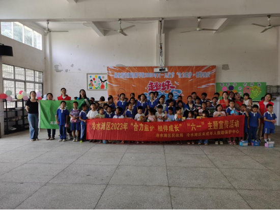 为深入贯彻落实《未保法》,切实做好农村留守儿童和困境儿童关爱保护工作,5月28日,在冷水滩区民政局的支持指导下,冷水滩区未成年人救助保护中心联合高溪市镇社工站、博益社工在易家桥萱娅暖阳学校开展2023年六一儿童节“合力监护 相伴成长”趣味运动会。