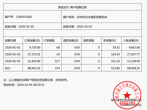 三、社会捐赠资金、物资接收具体详情--微信平台支付情况