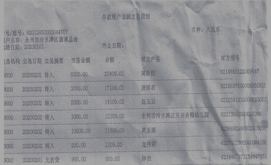 二、社会捐赠资金、物资接收具体详情--银行转账情况