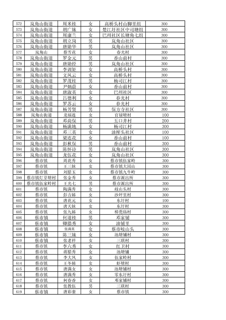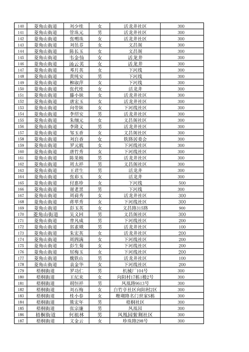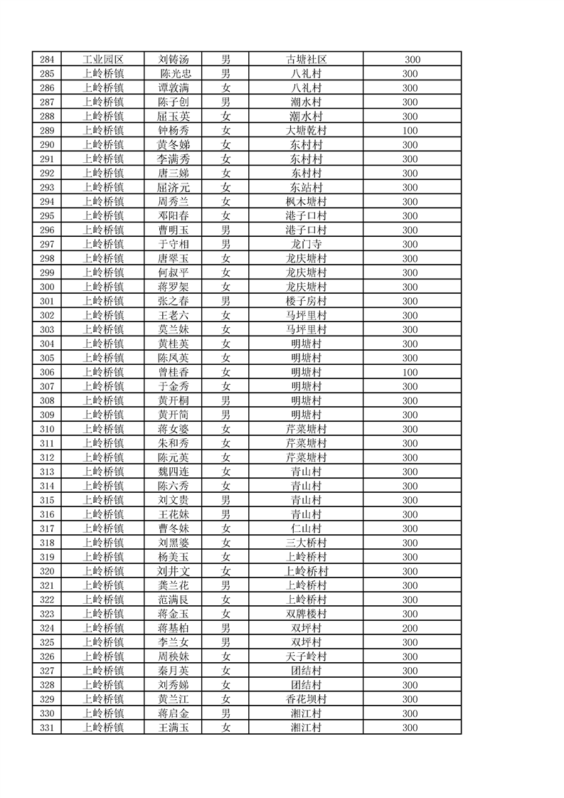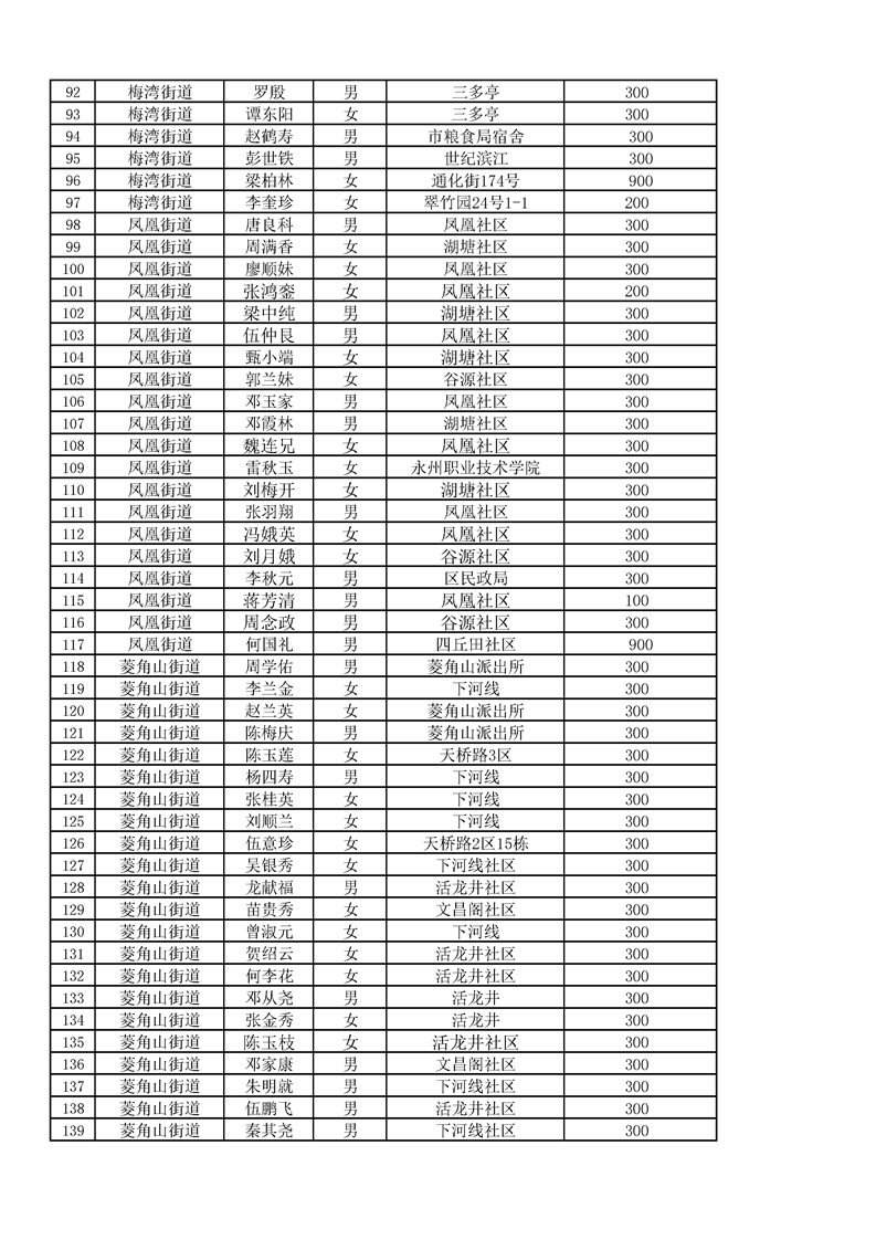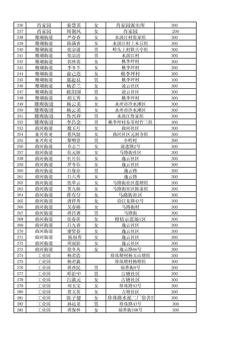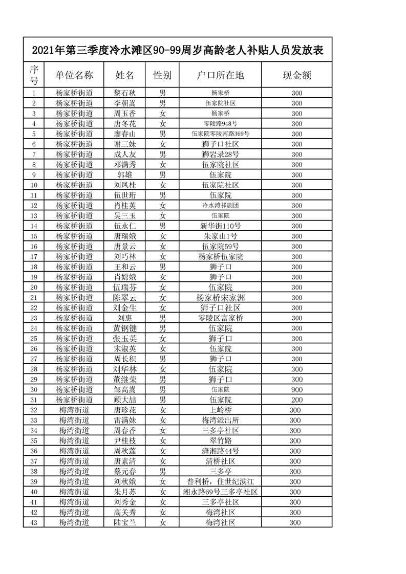 2021年第三季度冷水滩区90-99周岁高龄老人补贴人员发放表
