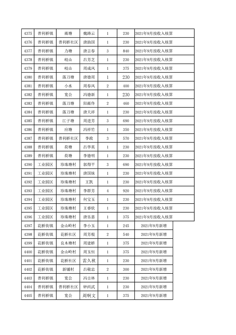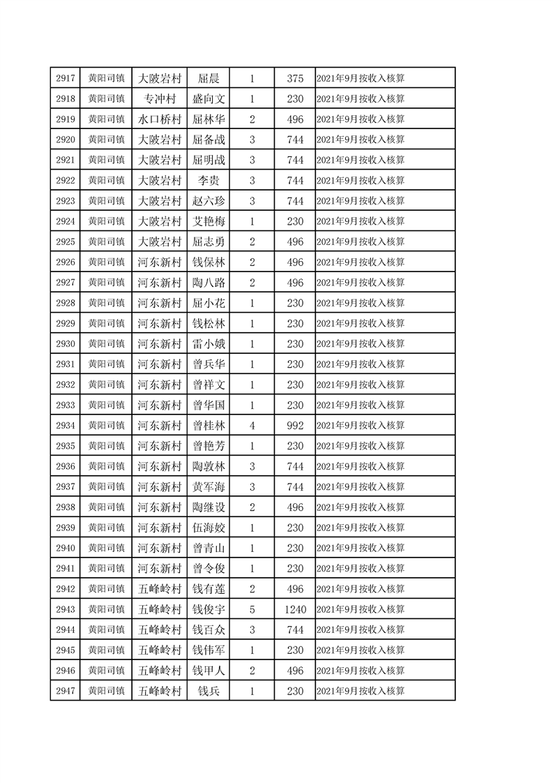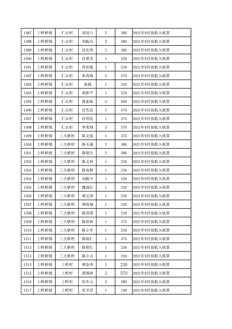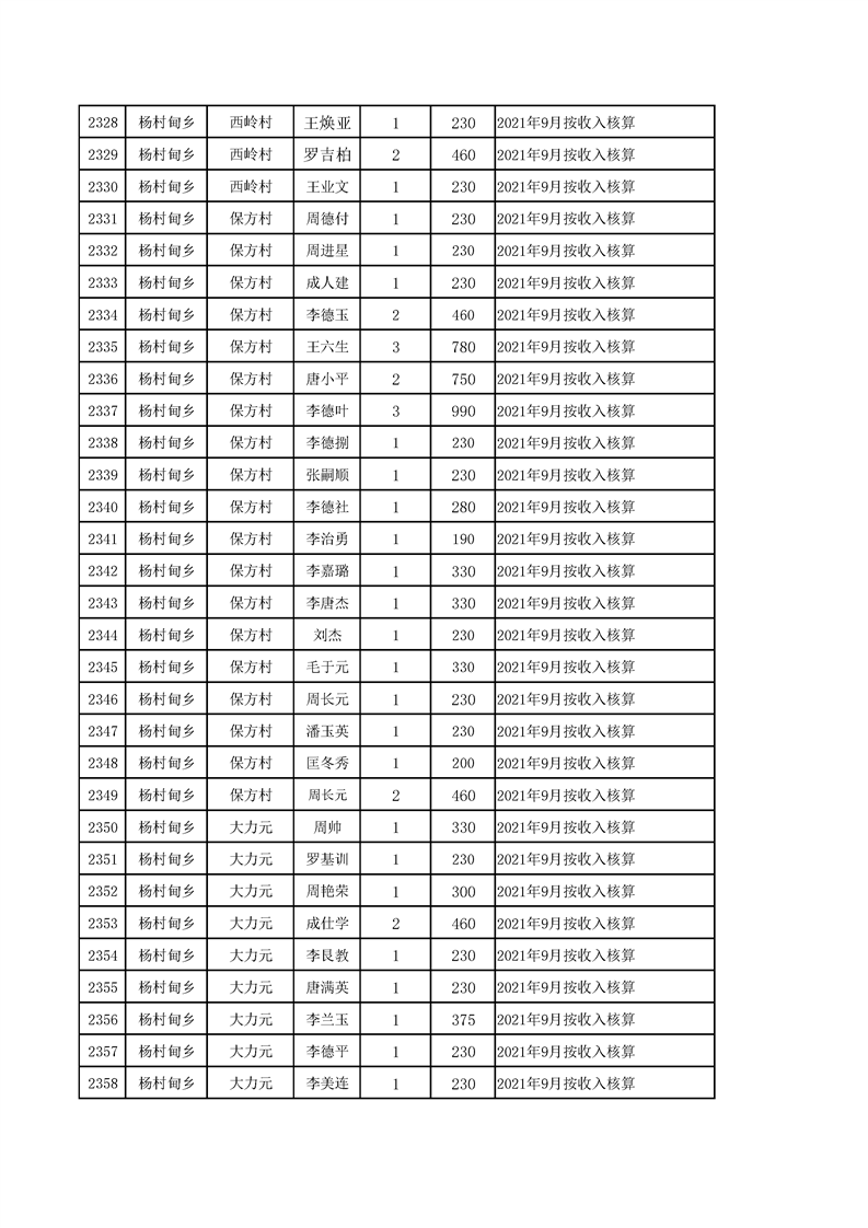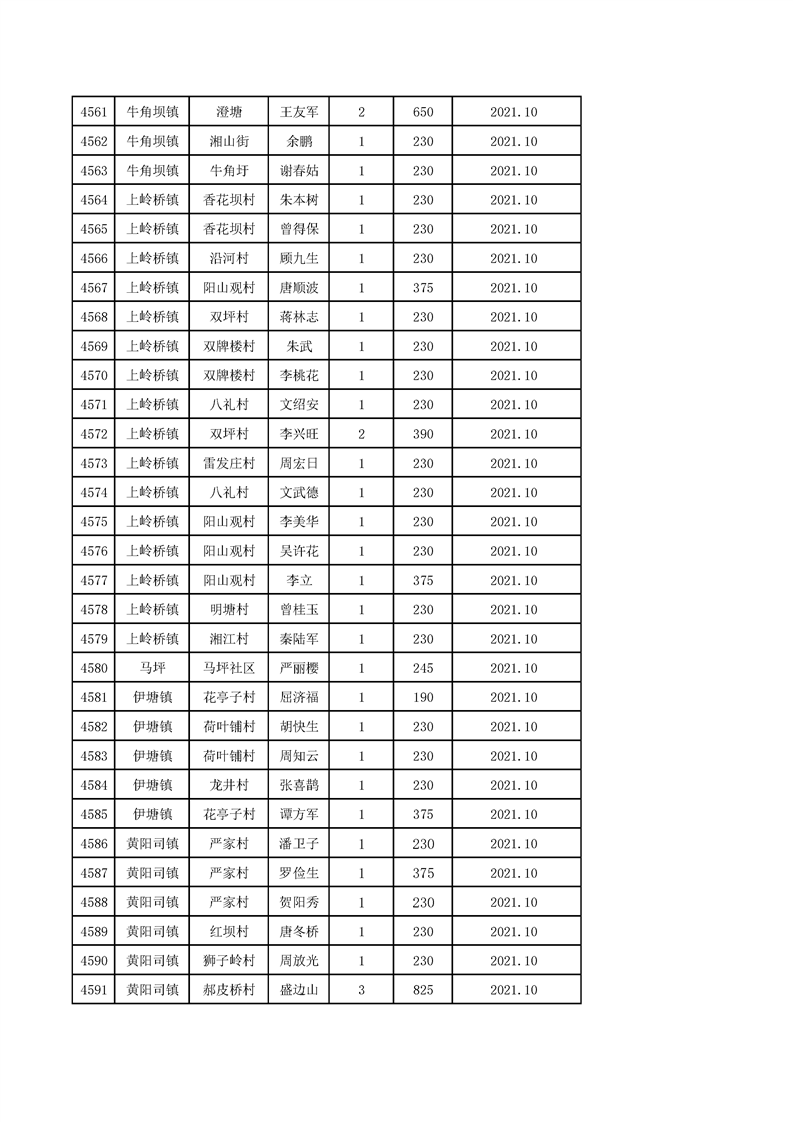 2021年10月农村低保