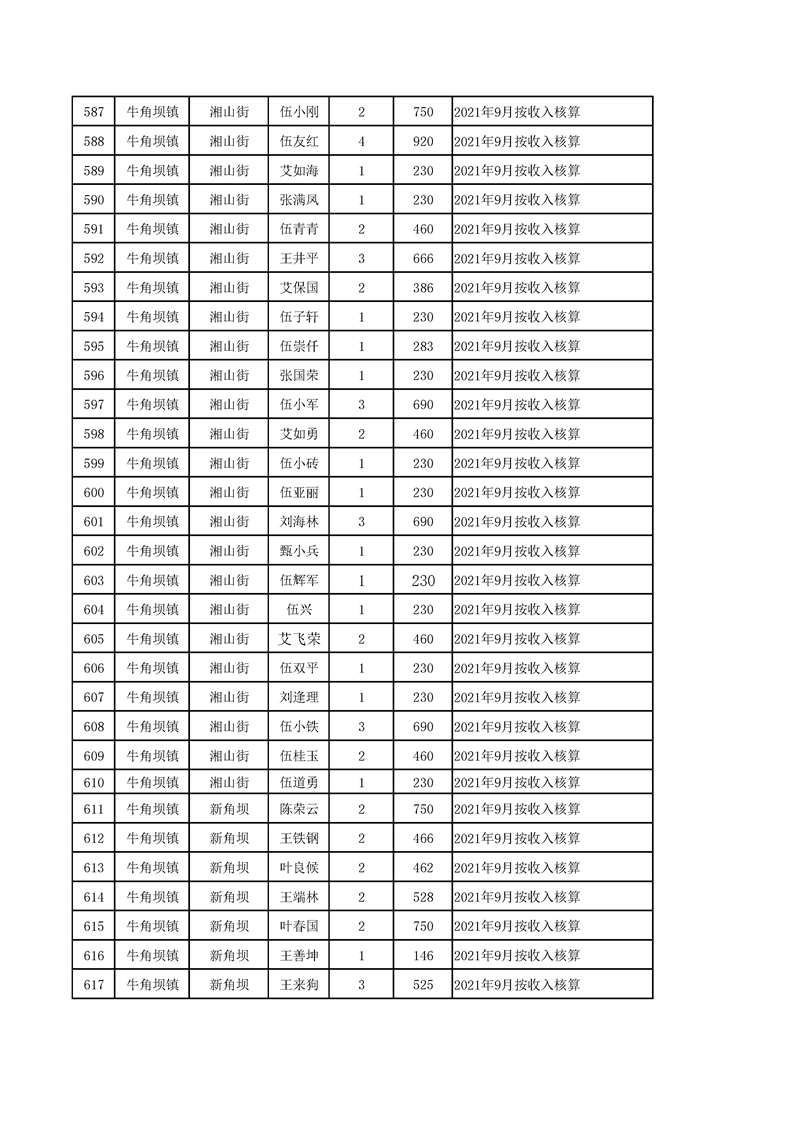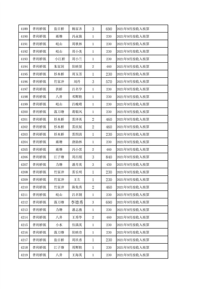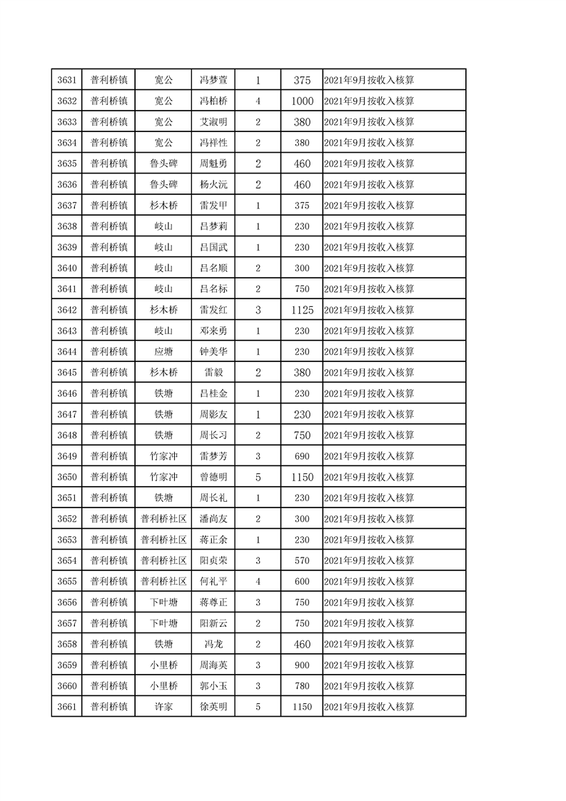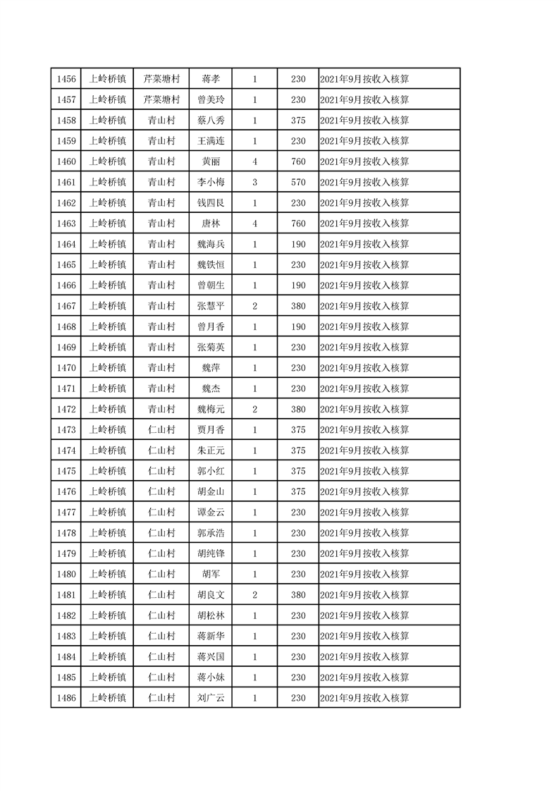 2021年10月农村低保