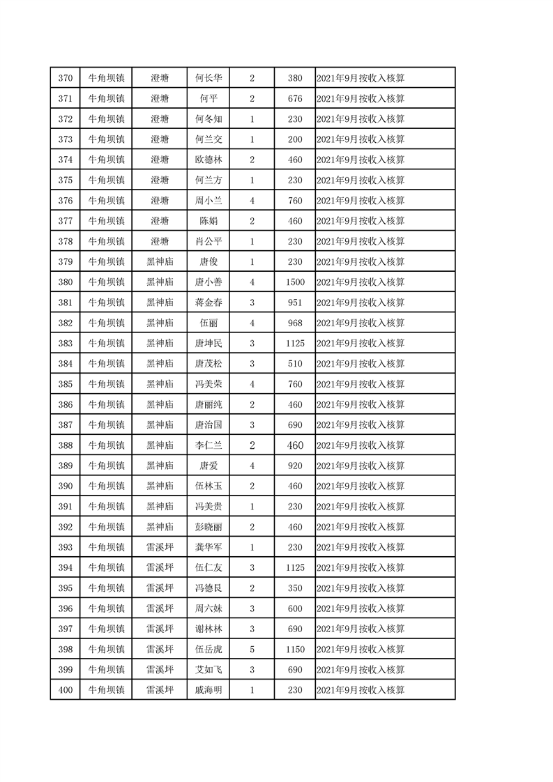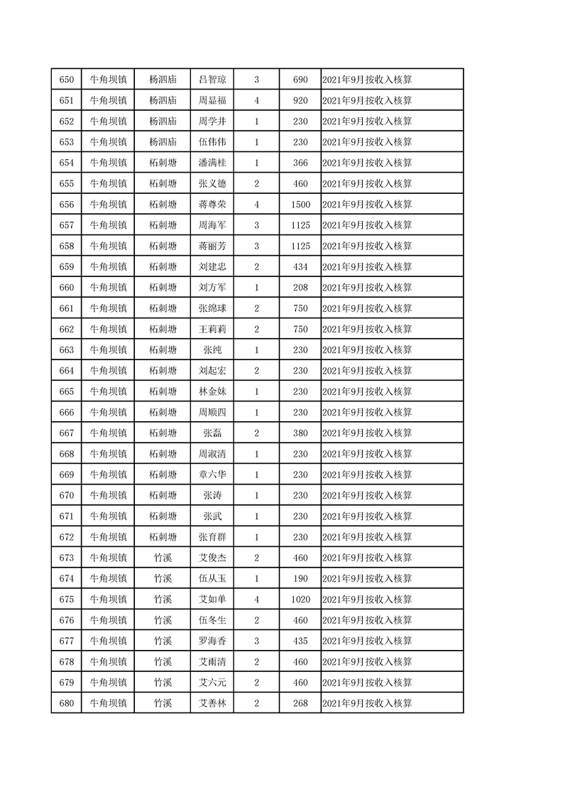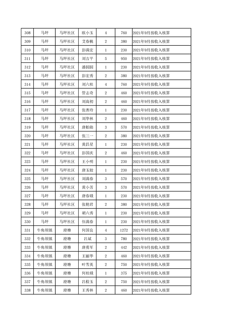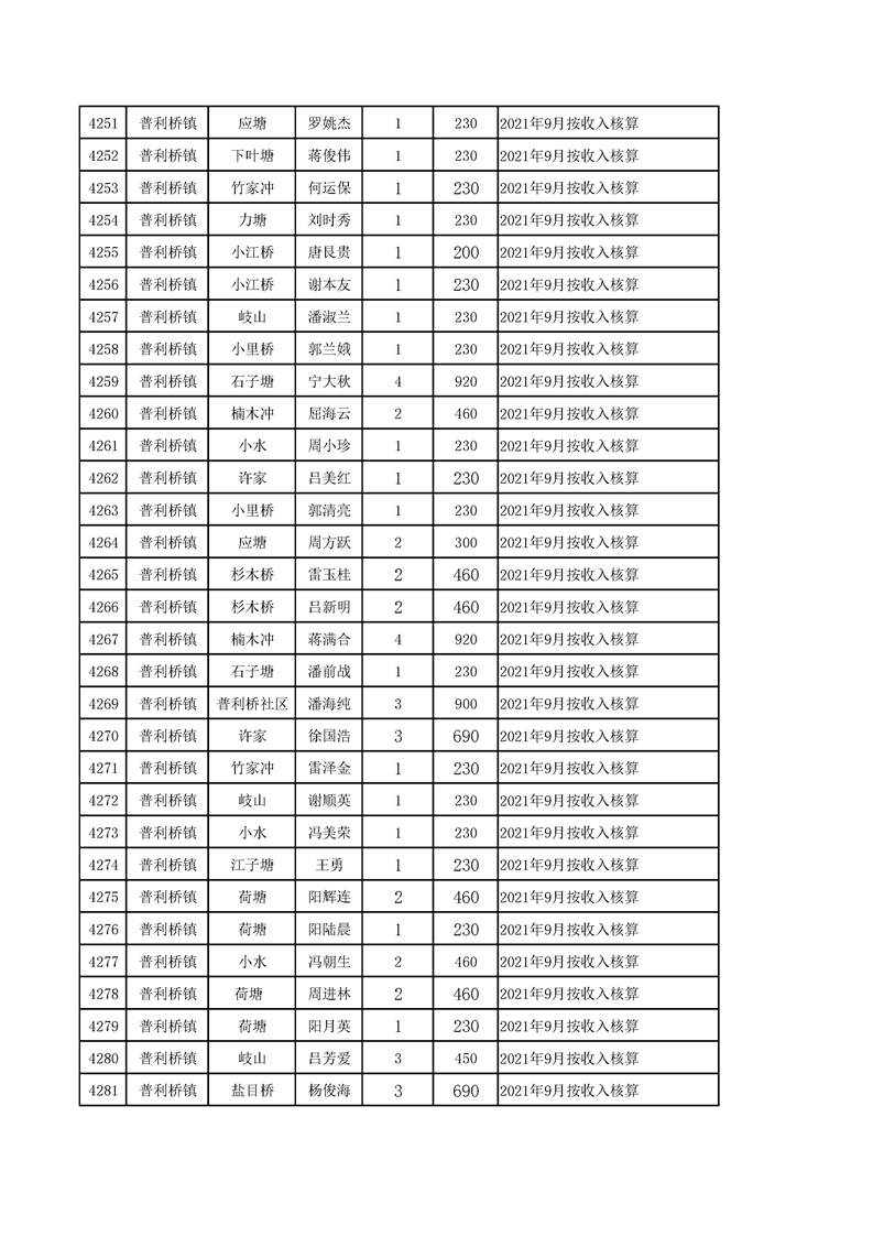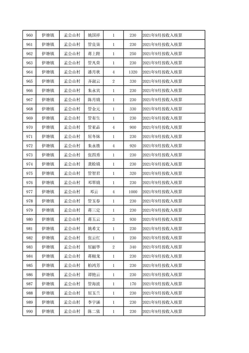 2021年10月农村低保