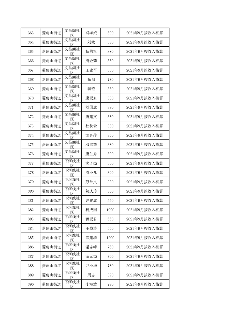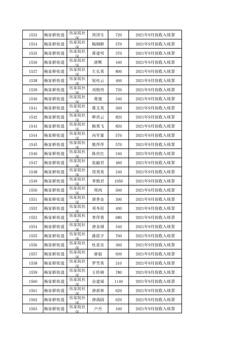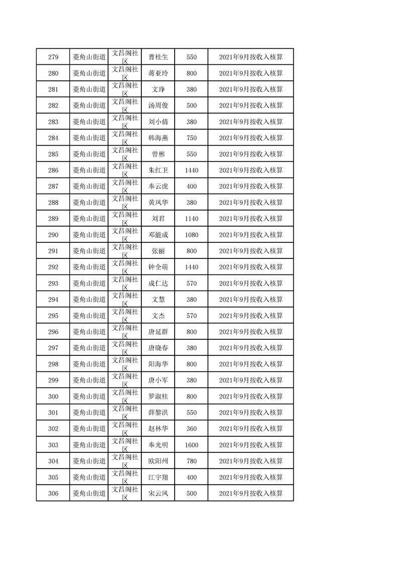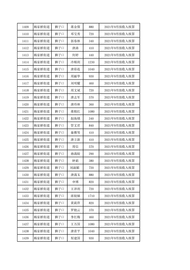 冷水滩区2021年11月城市低保发放名册