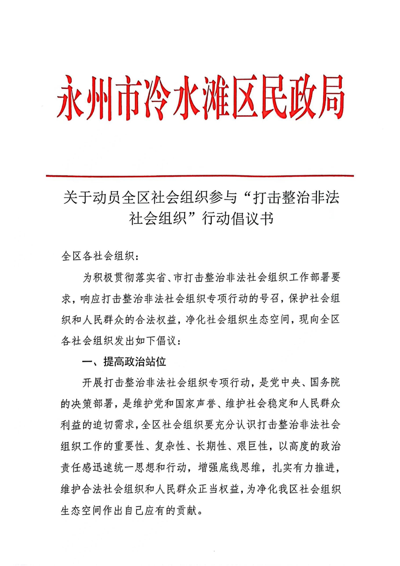 关于动员全区社会组织参与“打击整治非法社会组织”行动倡议书