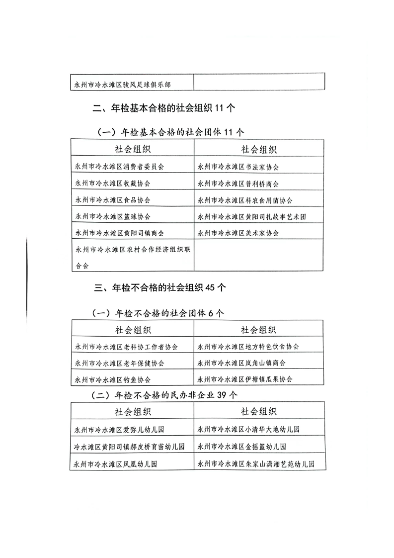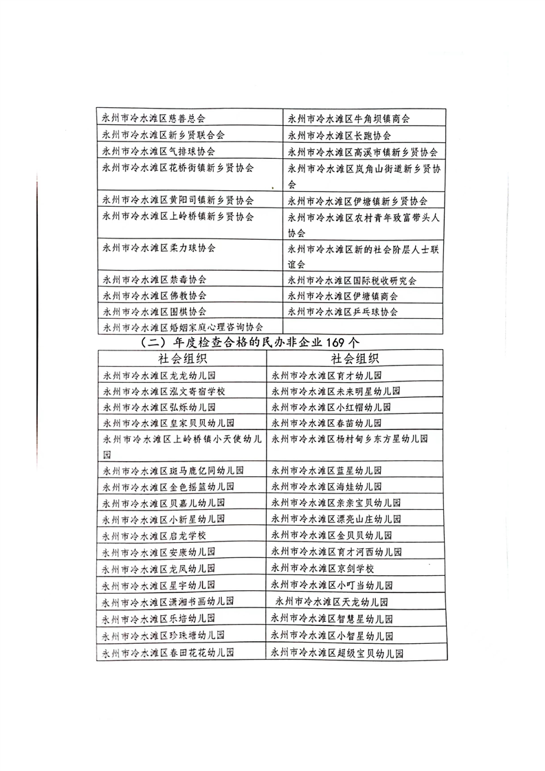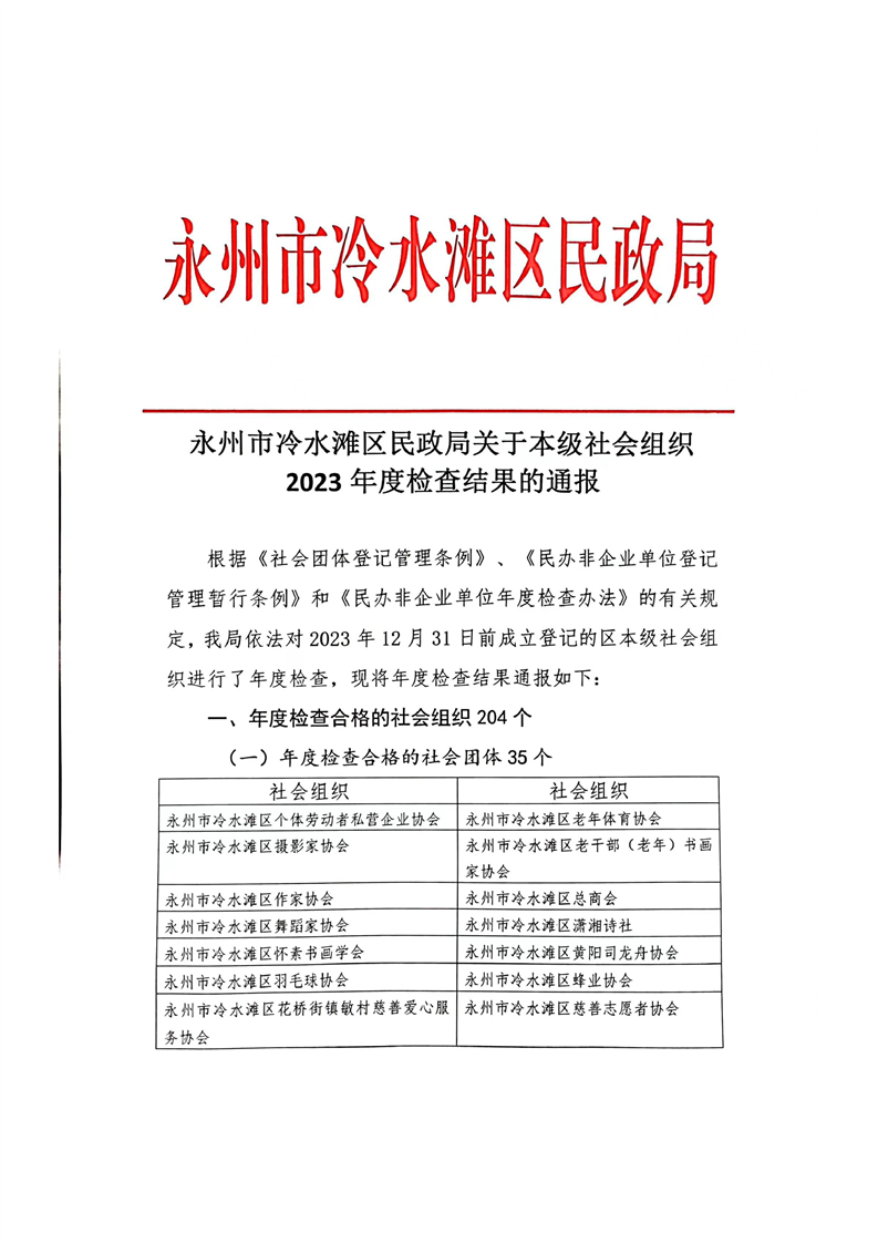 永州市冷水滩区民政局关于本级社会组织2023年度检查结果的通报