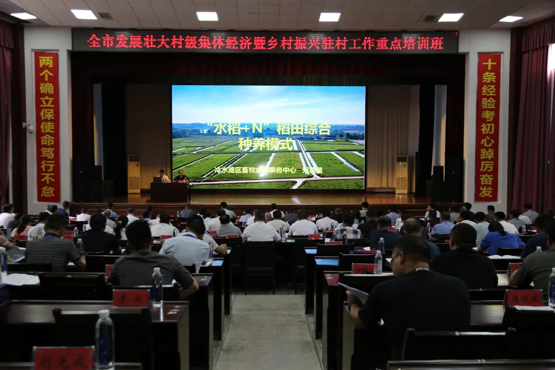 9月22日下午,冷水滩区畜牧水产事务中心邓星星应永州市委组织部邀请,以“‘水稻+N’综合种养模式助力乡村振兴”为主题,对正在永州市委党校举办的全市发展壮大村经济集体暨乡村振兴工作重点培训班学员进行了现场案例教学。