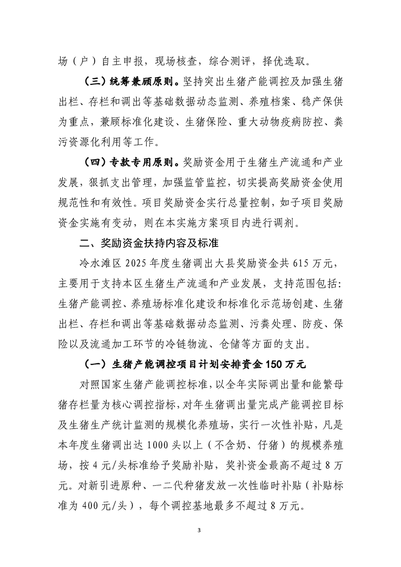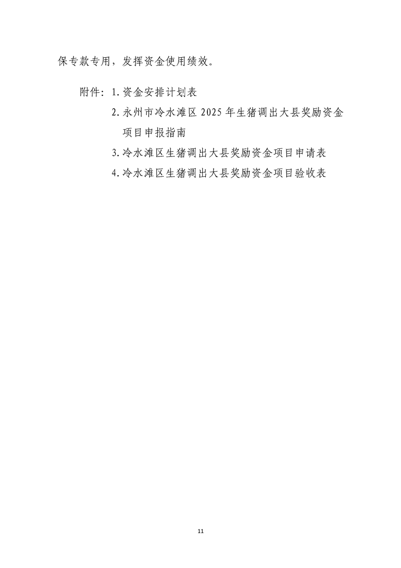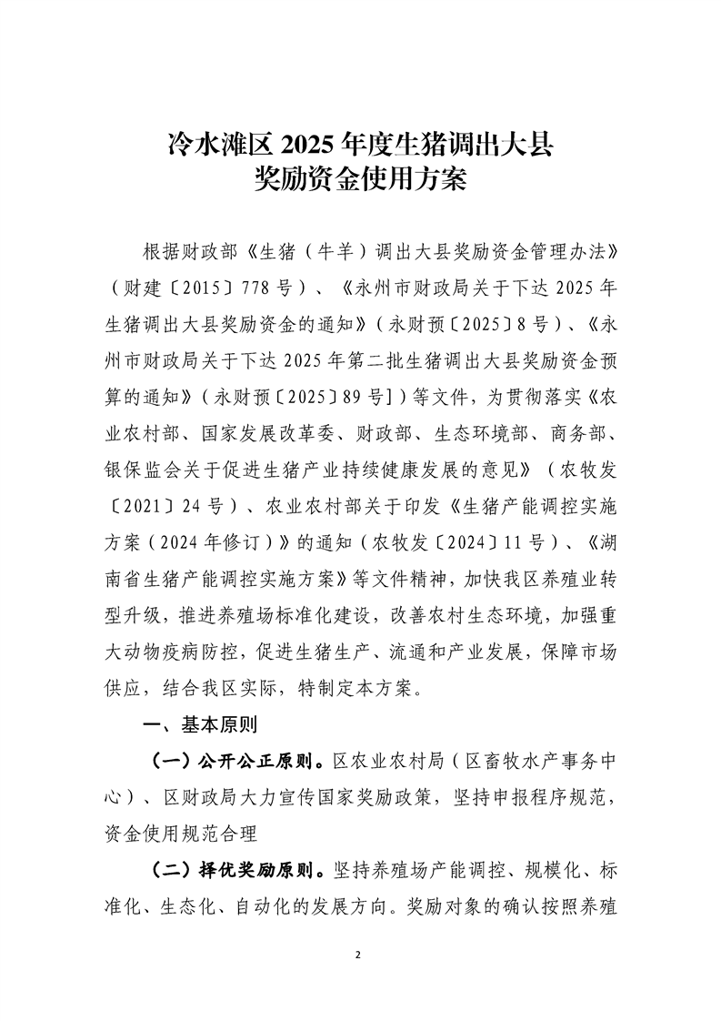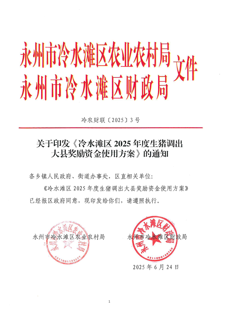 关于印发《冷水滩区2025年度生猪调出大县奖励资金使用方案》的通知