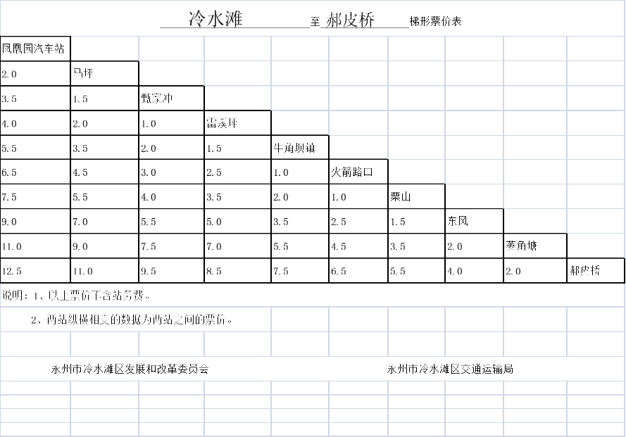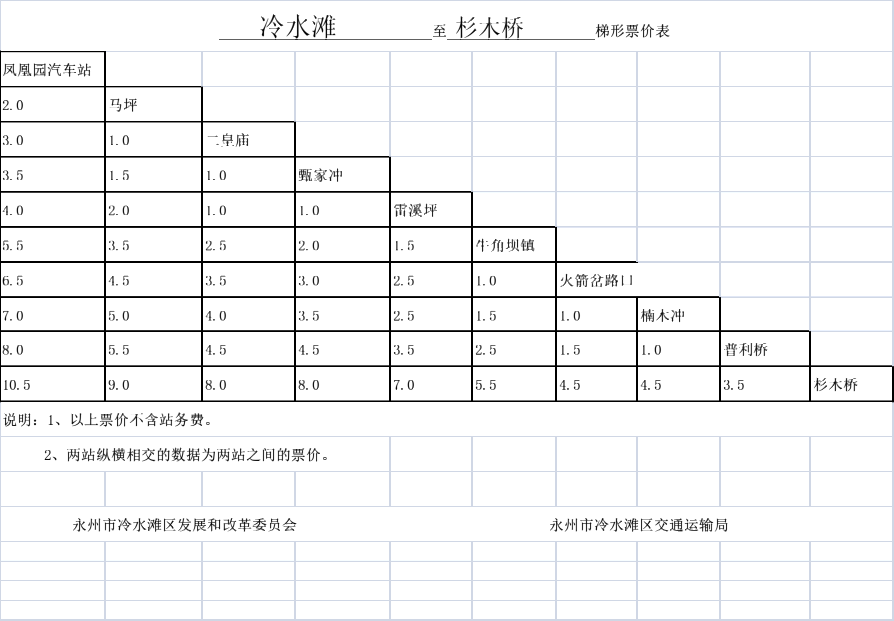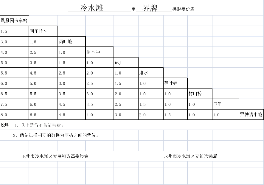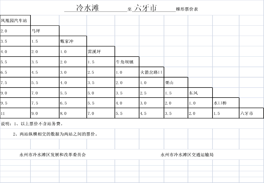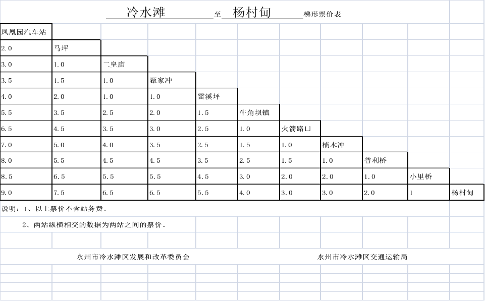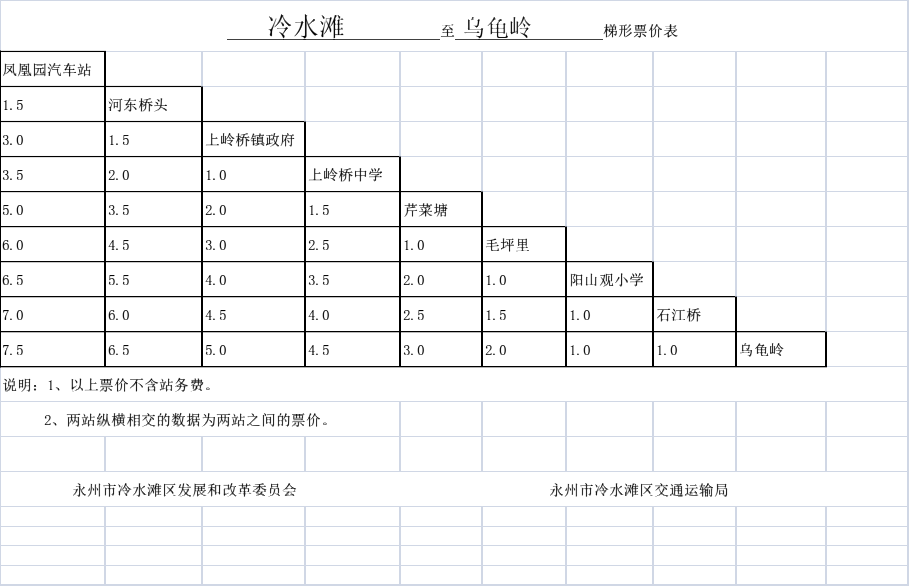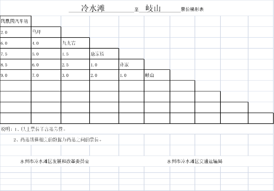 关于调整冷水滩区农村道路汽车客运票价的