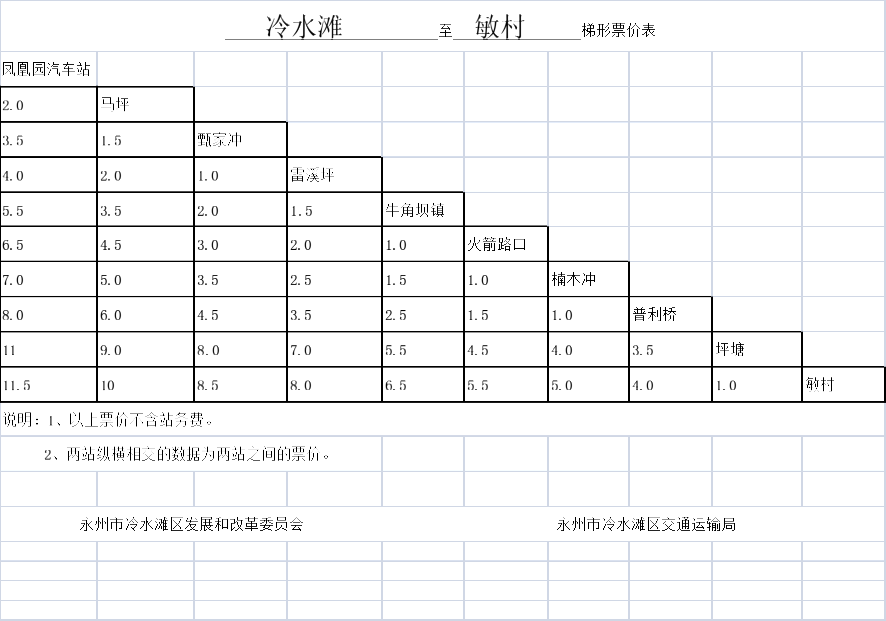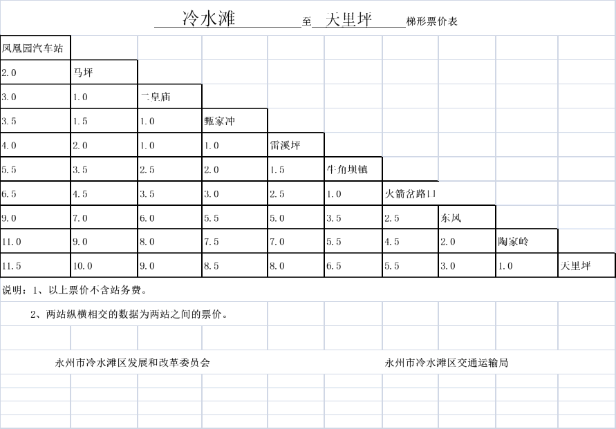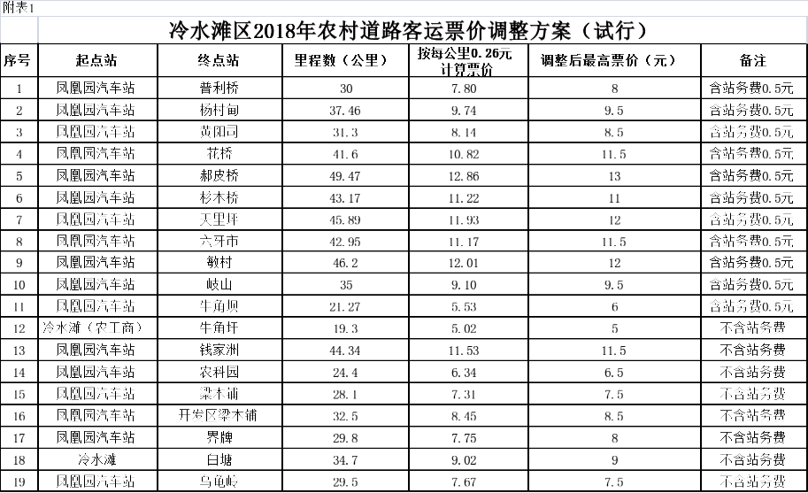 附表:1、冷水滩区2018年农村道路汽车客运票价调整方案