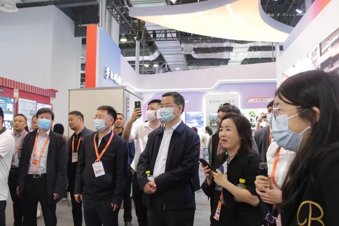 5月10日,2023年中国品牌日活动在上海世博展览馆开幕,以“国色添湘”为主题的湖南展馆正式展出。国家发展改革委产业发展司司长卢卫生对湖南馆进行巡馆,湖南省发展改革委党组成员、副主任文会中参加巡馆活动。