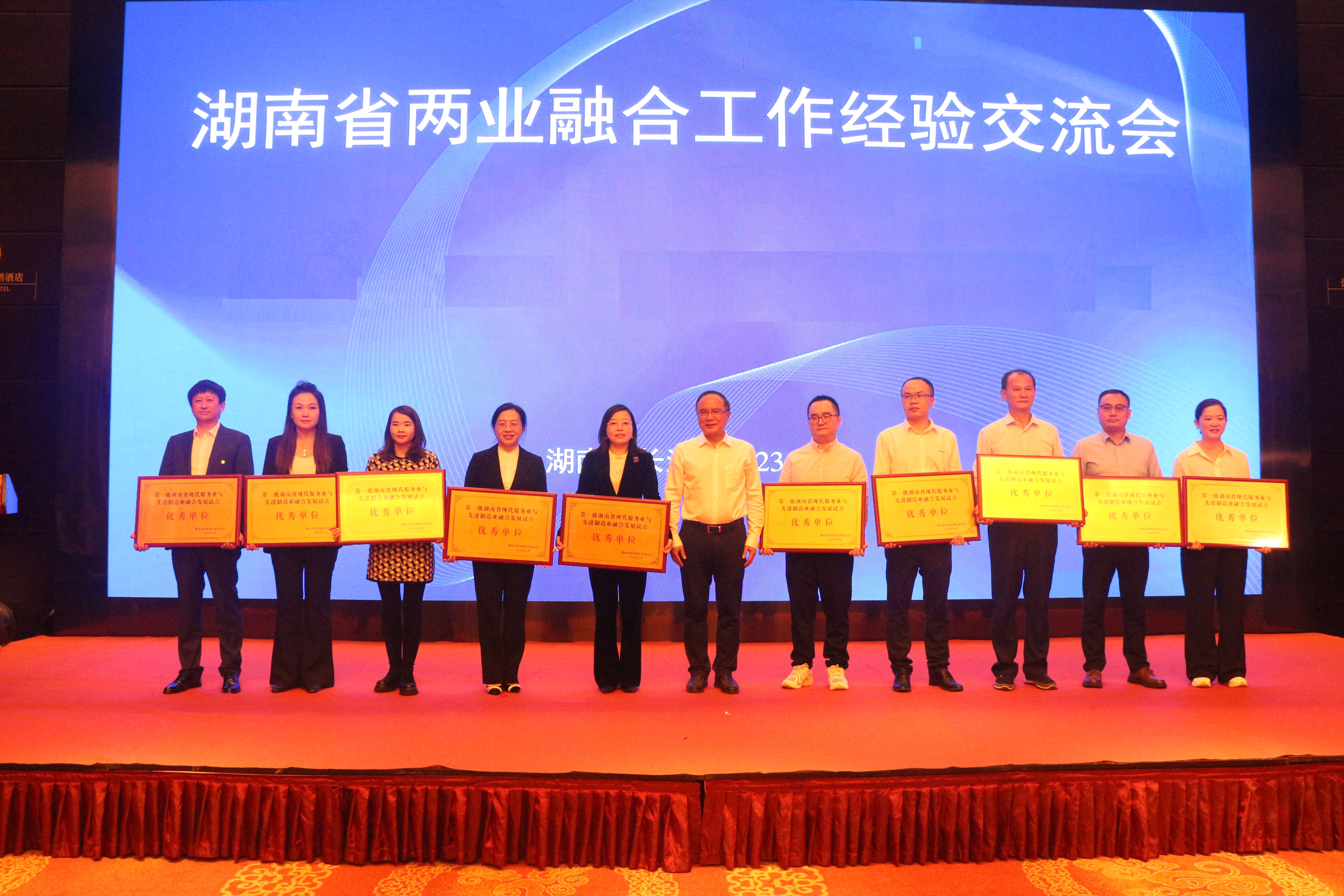 第一批省两业融合发展试点优秀单位中国能源建设集团湖南省电力设计院有限公司、威胜电气有限公司、湖南明和光电设备有限公司、湖南湘窖酒业有限公司、山河智能装备股份有限公司、中聚科技股份有限公司、湖南九典制药股份有限公司、中电工业互联网有限公司、奥士康科技股份有限公司、特变电工衡阳变压器有限公司。