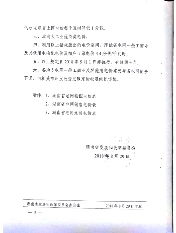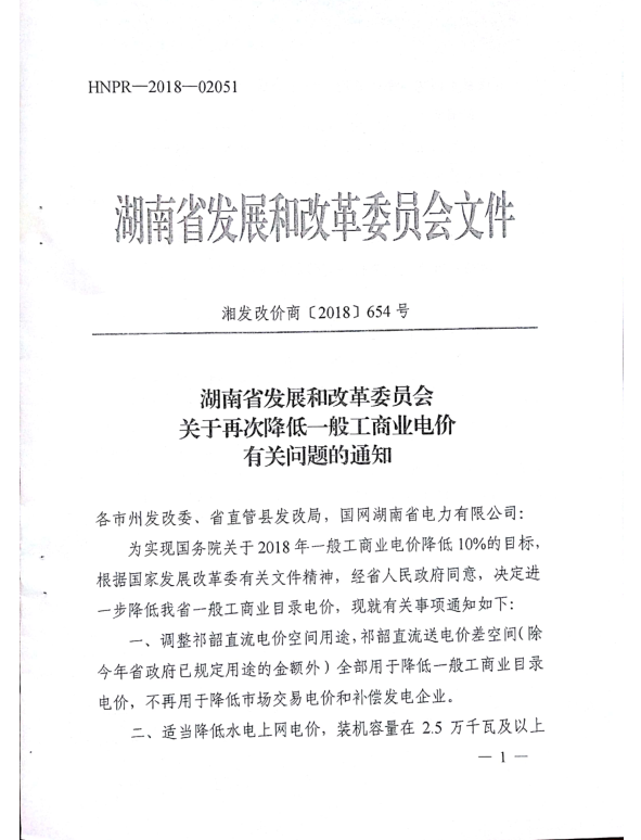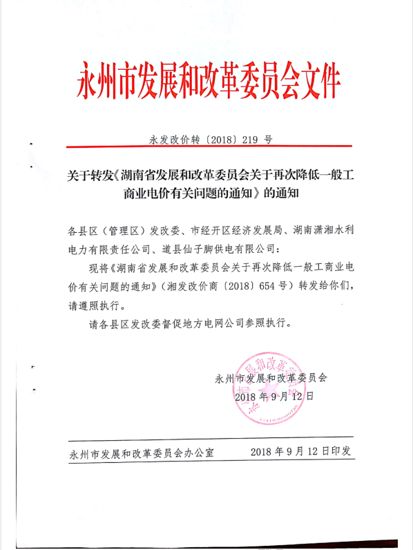 关于转发《湖南省发展和改革委员会关于再次降低一般工商业电价有关问题的通知》的通知