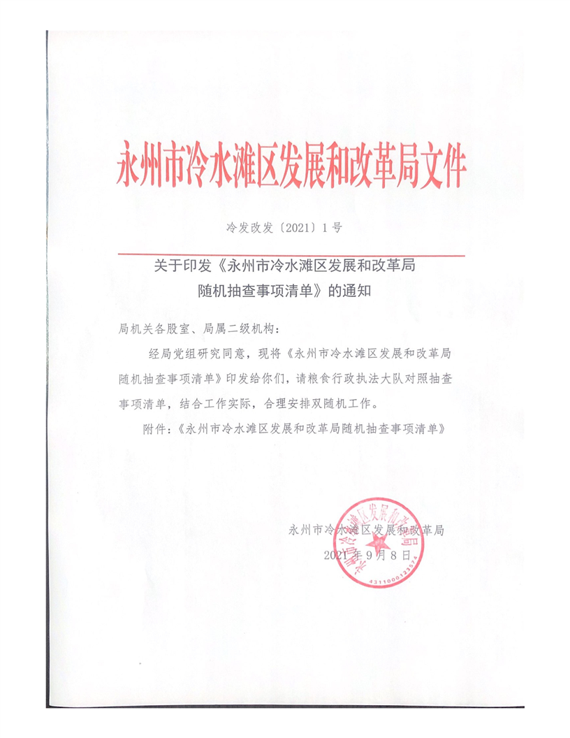 关于印发《永州市冷水滩区发展和改革局随机抽查事项清单》的通知