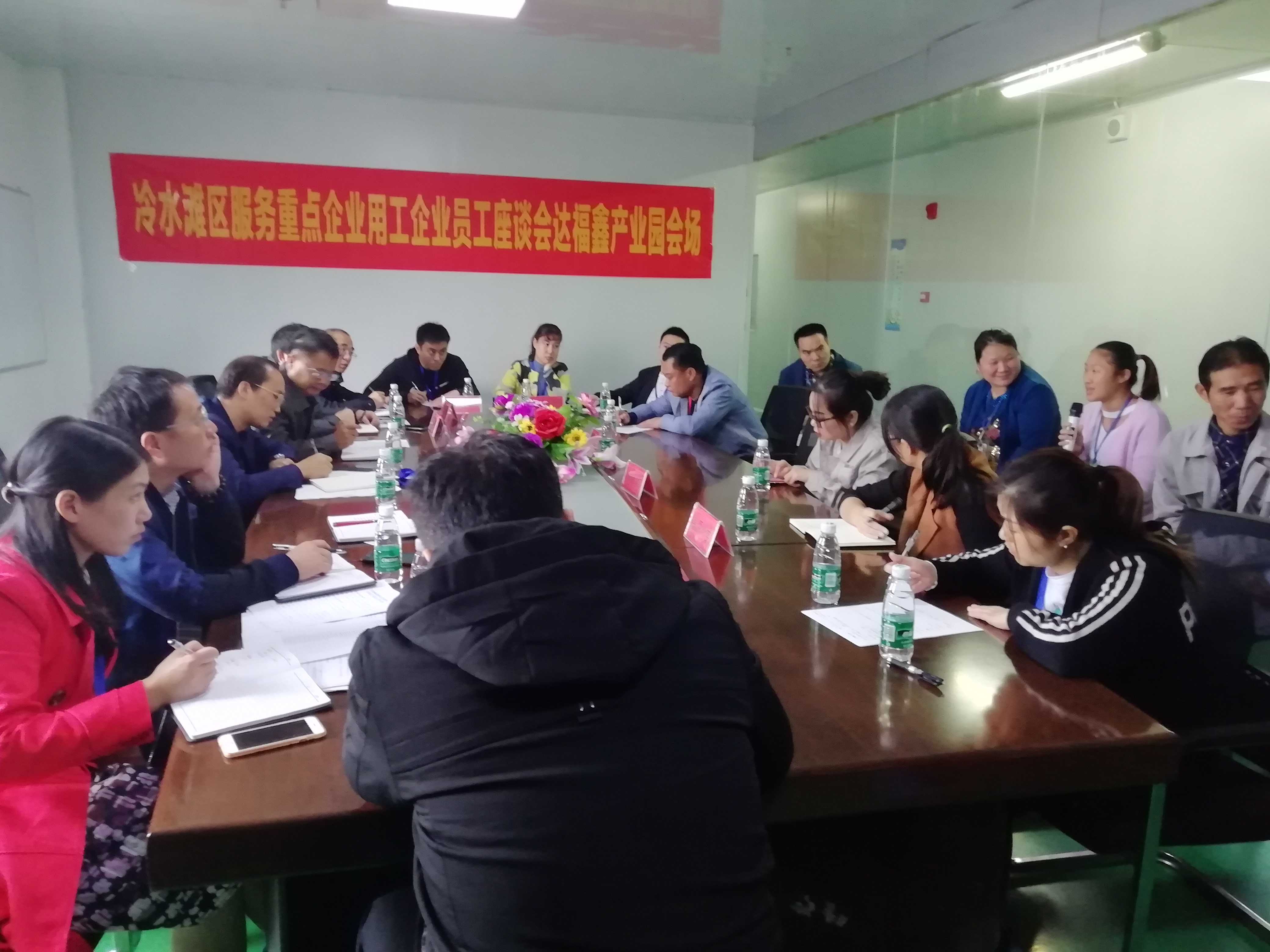 为深入了解园区企业用工情况,全力破解“招工难”“留人难”和“就业难”问题,近日,由冷水滩区人社局牵头,分别在达福鑫电子产业园和中小企业创新创业园会议室召开重点企业员工代表座谈会,区委督查室、高科园、经信委、商粮局等部门参加,为企业和员工架起了真诚沟通的桥梁。会上,各部门倾听了员工的心声,宣传讲解了区委、区政府关于服务企业用工二十条意见,鼓励企业建立“一带一”招工激励,完善人文关怀机制,促进员工安心工作。针对企业员工关心的社保政策、公交班次、安全出行等问题,各职能部门表示积极做好汇总汇报,争取早日解决。
