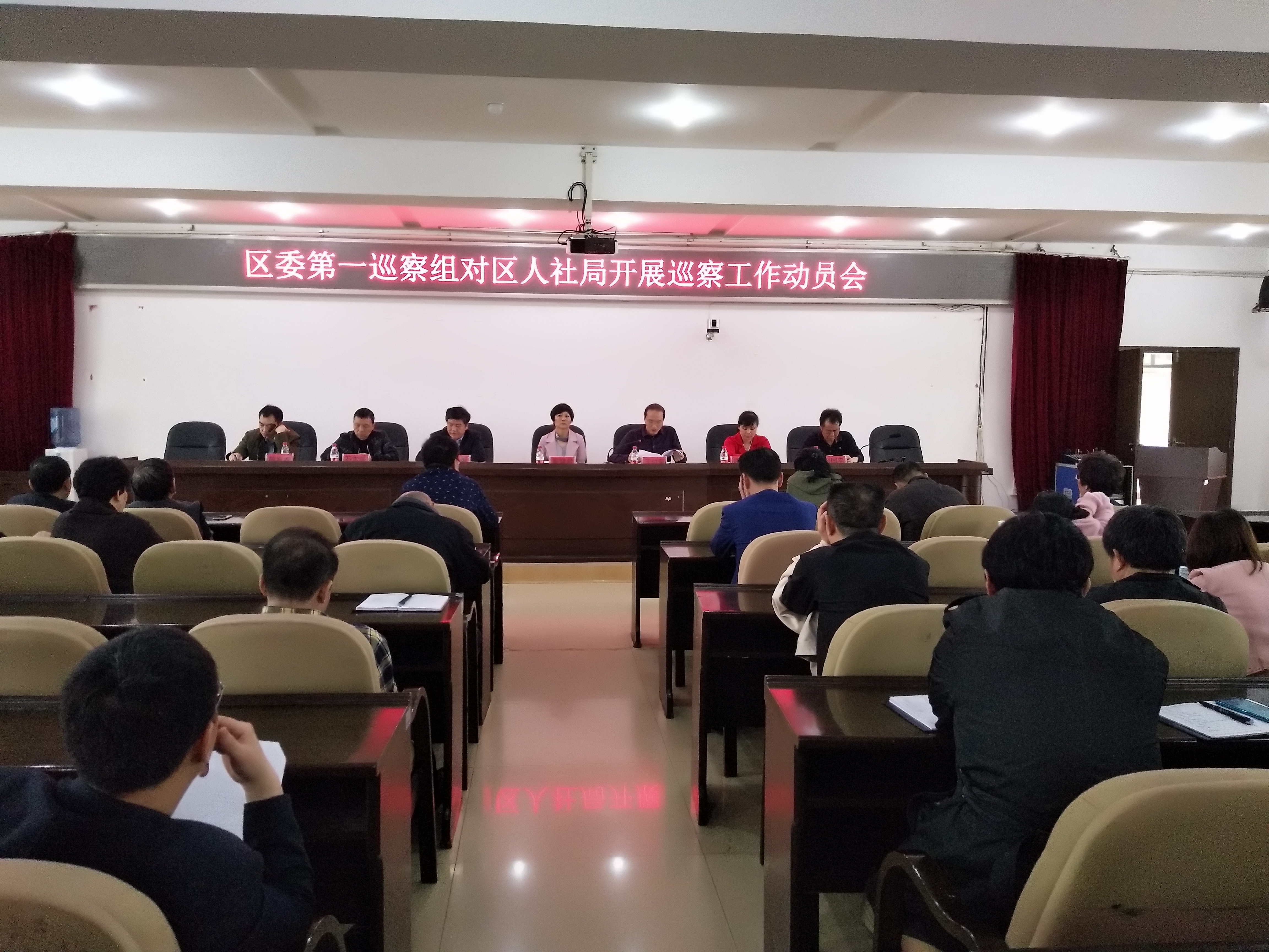 3月21日,冷水滩区人社局召开八届区委第六轮巡察工作动员会, 区委巡察工作领导小组成员、区纪委副书记、区监察委员会副主任周健君、第一巡察组组长蒋善国,副组长屈伸等出席了会议。冷水滩区人社局党组书记、局长王付荣及局班子成员、纪检组长、二级机构主要负责人、科级干部、机关股室负责人共50余人参加会议。