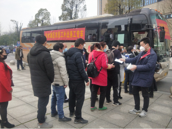与此同时,区人社局还推出专车免费送园区企业员工返岗服务。“现在党和政府对我们农民工的服务真好!不但为我们找到了工作,还包车免费送我们。”乘车返岗的达福鑫员工王嘉利开心地说。