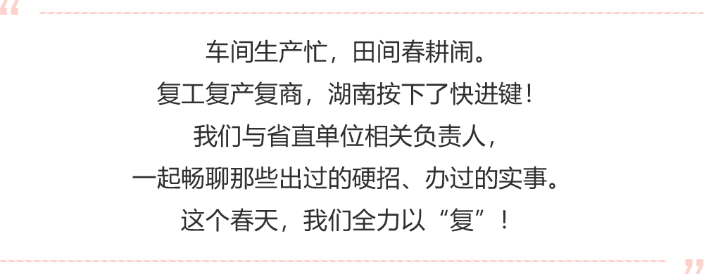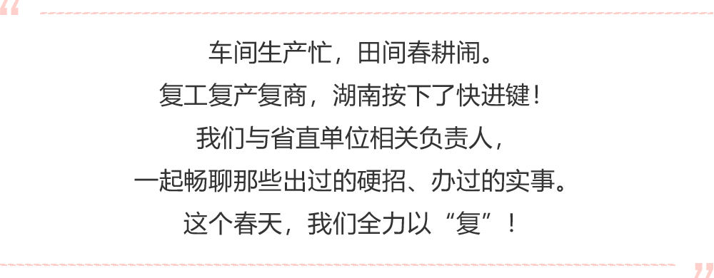 主持人:这个春天,我们全力以“复”!这里是由湖南省政府门户网站联合湖南日报中央厨房,推出的《三湘解读·“厅”说政策——2020年复工复产复商政策访谈》。企业用工、农民工就业、大学毕业生找工作,这些都是复工复产路上的重头戏。我们人社部门是怎样为他们搭好台的?今天我们非常荣幸地邀请到了湖南省就业服务中心纪委书记严雄建,和我们一块聊一聊稳岗就业那些事。严书记,您好,跟我们的网友打个招呼。