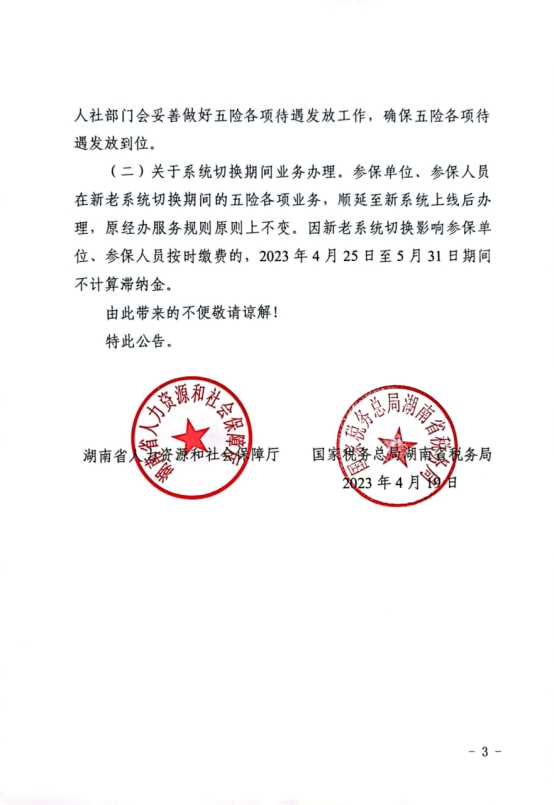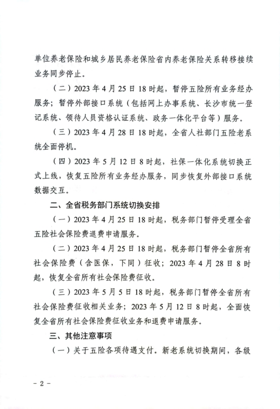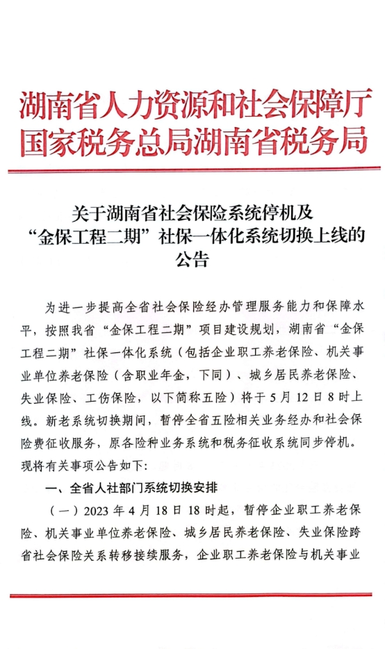 根据湖南省“金保工程二期”项目建设规划,“金保工程二期”社保一体化系统(包括企业职工养老保险、机关事业单位养老保险〔含职业年金,下同〕、城乡居民养老保险、失业保险、工伤保险,以下简称五险)于5月12日8时上线。全区五险旧系统于4月25日18时起,暂停相关业务经办服务。停机期间,如有业务咨询,可拨打服务热线: