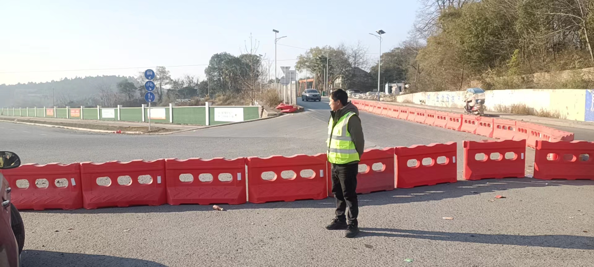 珊瑚街道龙家岭社区,工作人员穿上马甲,在辖区的主次道路上为过往的车辆进行疏通引导,确保辖区不发生车辆拥堵和事故的发生。