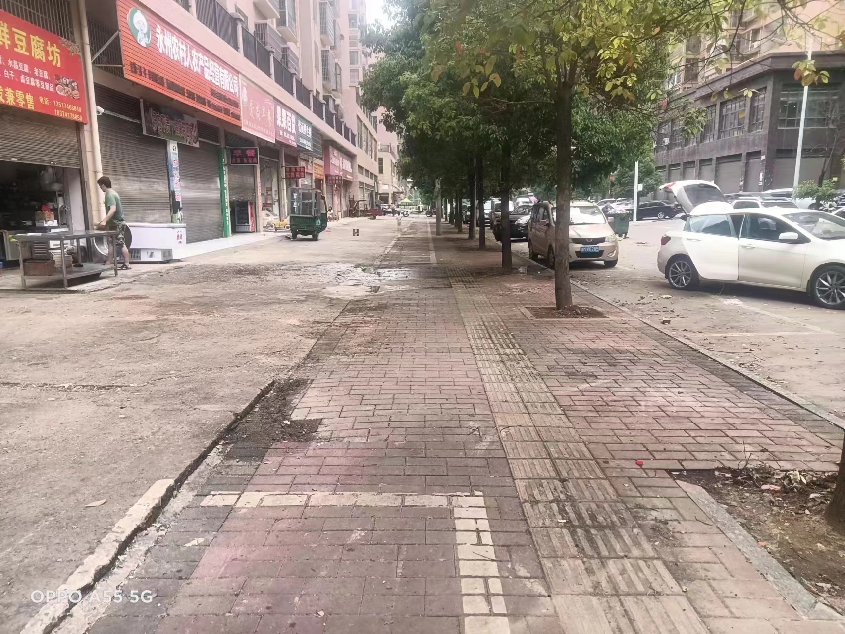 大队对摆放在人行道上的架子、帐篷等摆摊的工具等全部拆移走,划好经营区域,树立公示牌。整治后,给周边