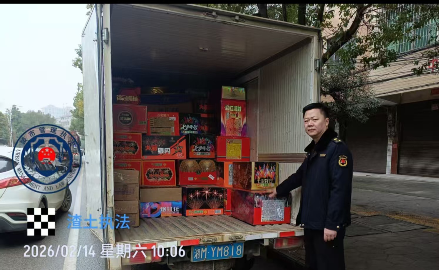 2月14日,辖区珍珠路发现违规售卖烟花爆竹;联合市、区执法部门,严查在禁燃区域内售卖烟花,收缴了违规售卖的烟花。