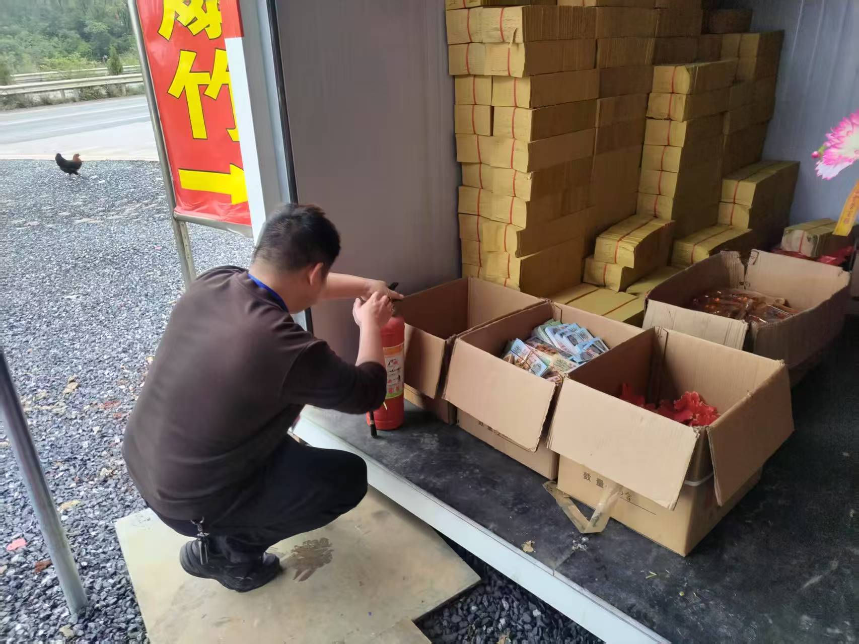 近日,天气回暖。对辖区的烟花爆竹店进行日常巡查,检查灭火器是否过期,违规使用电源,检查台账,签订巡查日记,确保辖区安全无事故发生。