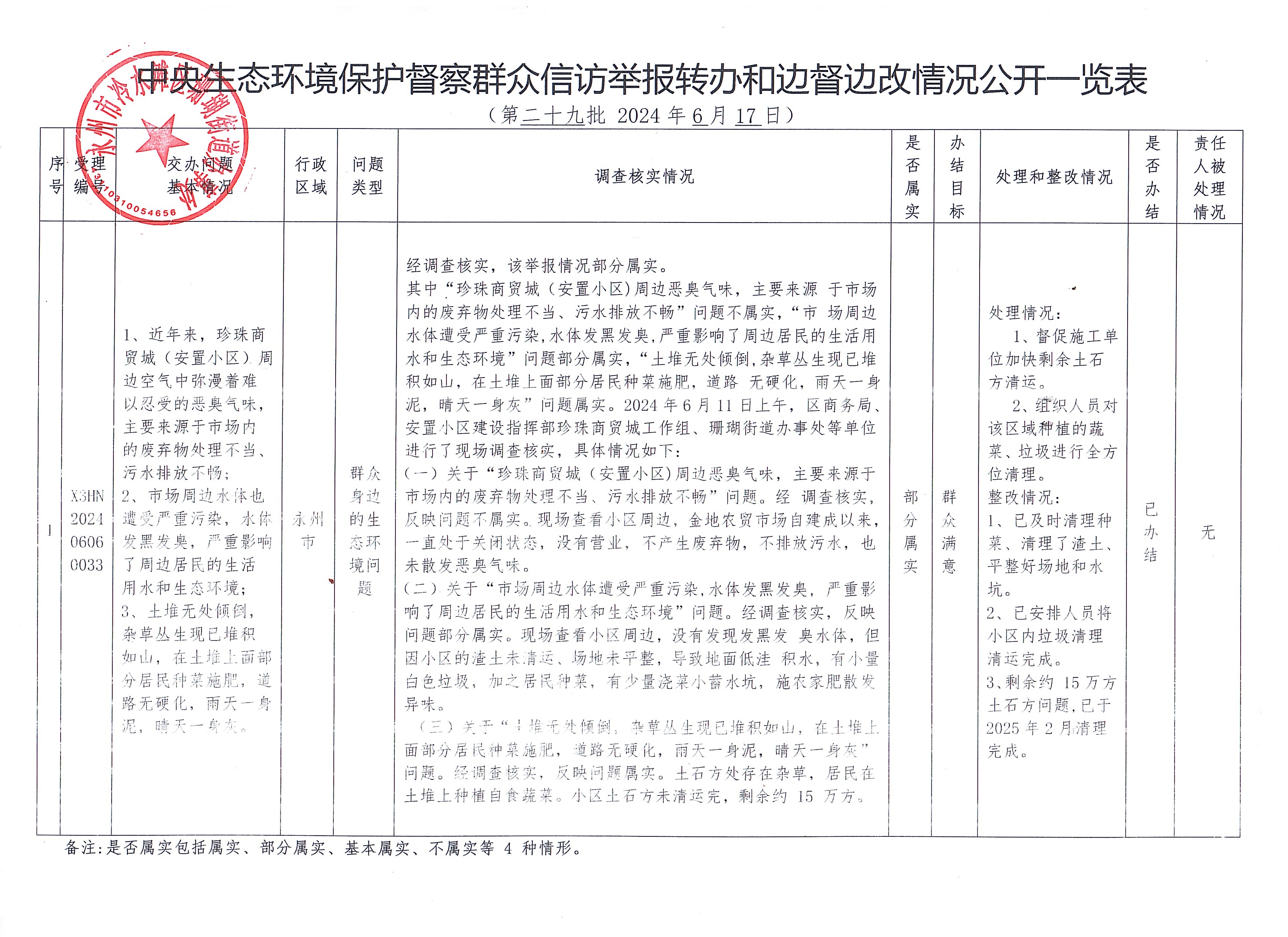 中央生态环境保护督察群众信访举报转办和边督边改情况公开一览表