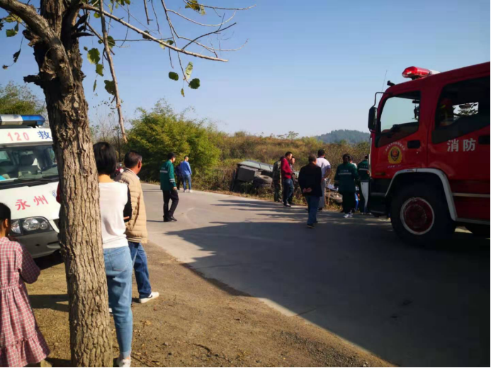 2019年11月1日上午8点半,我们冷水滩区审计局的两名审计人员与区财政、区住建的两名同志一道,前往普利桥镇开展污水处理厂管网工程结算审计,途经马坪二皇庙村一弯道处,迎面而来的一辆蓝色货车突然侧翻在路边陡坡下,车里传出痛苦的呼救声。