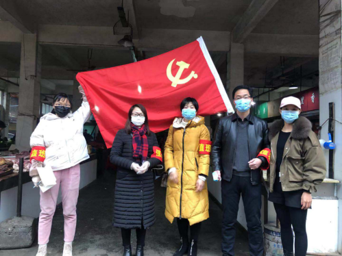 图为审计人员在市场开展防疫工作