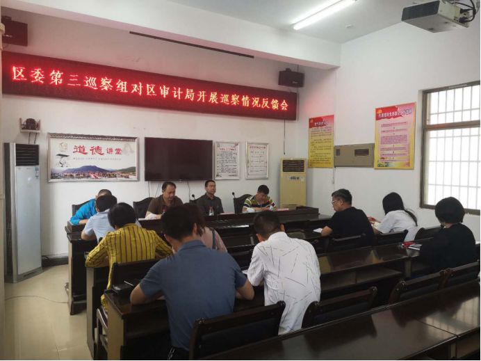2020年5月13日上午9点,在区审计局8楼会议室,召开区委第三巡察组对区审计局开展巡察情况反馈会。参加会议的人员有区委第三巡察组组长唐新,副组长周吉国,巡察组成员张灵波,区审计局班子成员及各股室负责人,会议由区审计局党组书记、局长周顺华主持。
