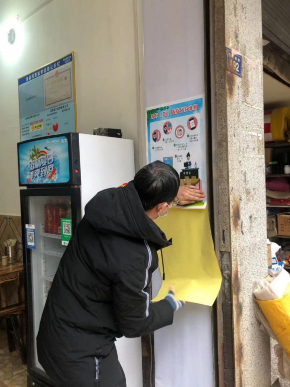 该局干部职工通过在社区张贴居家、超市、餐厅、银行防疫准则宣传画,向群众宣传讲解防护知识,引导社区居民以积极的心态面对疫情,营造浓厚的防疫氛围,达到群防群控的效果。