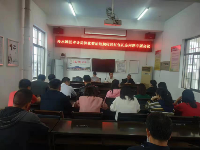 为扎实开展“镜鉴”以案促改专项活动,进一步净化政治生态,深化全面从严治党,5月24日下午,冷水滩区审计局紧急召集全局干部职工召开了深化整治违规收送红包礼金问题专题会议。我局党组高度重视,通过对干部职工进行政策再宣传、工作再动员,讲清讲透“自查从宽,被查从严”政策,加大自查自纠力度,做到股级及以上干部应签尽签专项承诺书。并结合4月的机关支部主题党日活动,组织全局党员、干部职工现场观看学习了市纪委通报曝光本地查处的三个典型案例。真正做到教育在先、约束在先、监督在先,给审计局全体党员、干部和职工上了一堂生动的党风廉政教育课。
