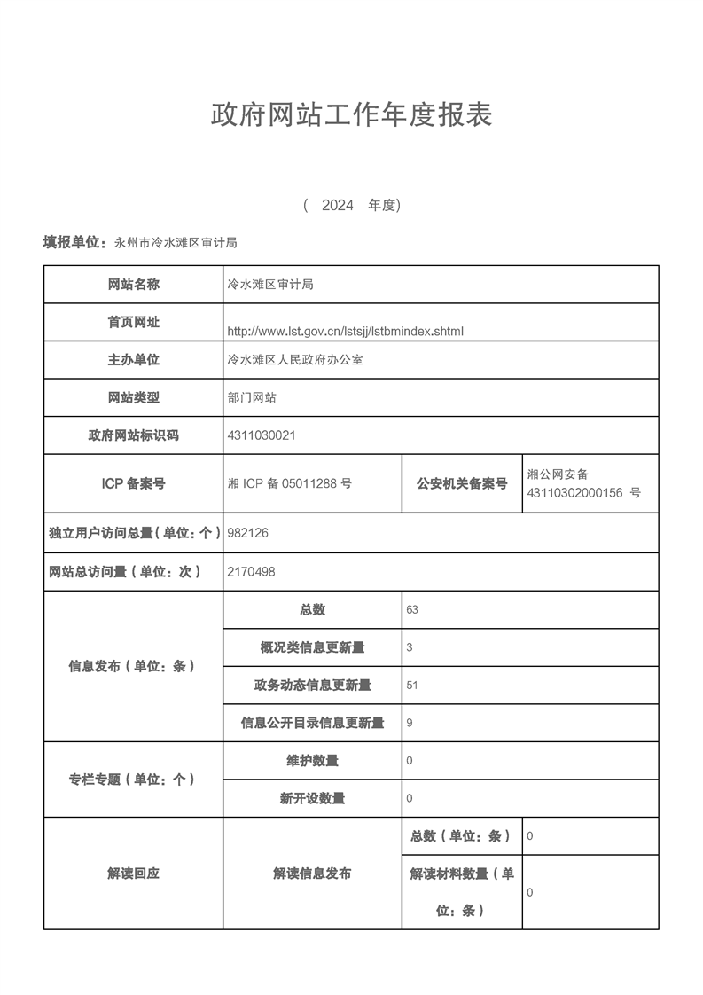 永州市冷水滩区审计局2024年政府网站工作年度报表