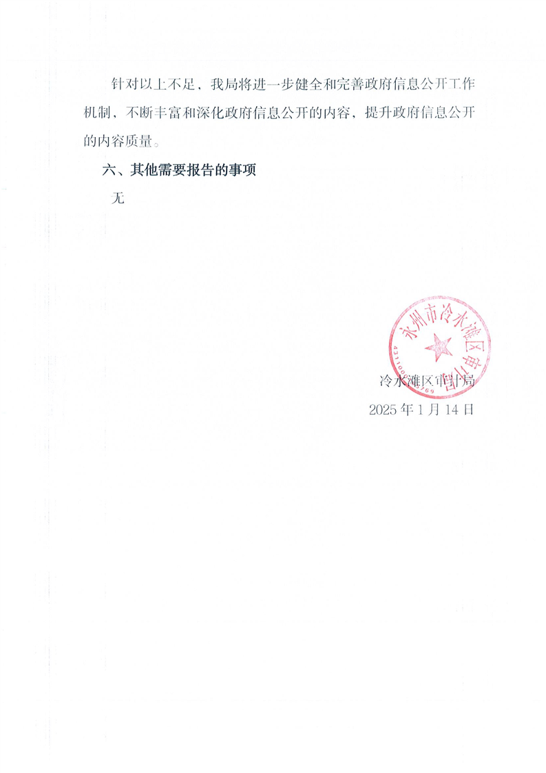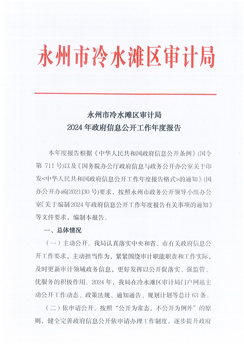 永州市冷水滩区审计局2024年政府信息公开工作年度报告