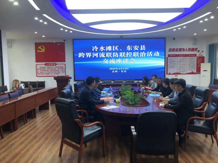 签订仪式上,冷水滩区河长办、冷水滩区水利局、东安县河长办、东安县水利局相关人员围绕河长制工作、水政执法开展情况、存在问题及2023年工作打算开展了座谈交流;东安县水利局介绍了东安县幸福河湖建设的典型经验,并通过智慧河长平台交流了智慧河湖建设的有关工作。
