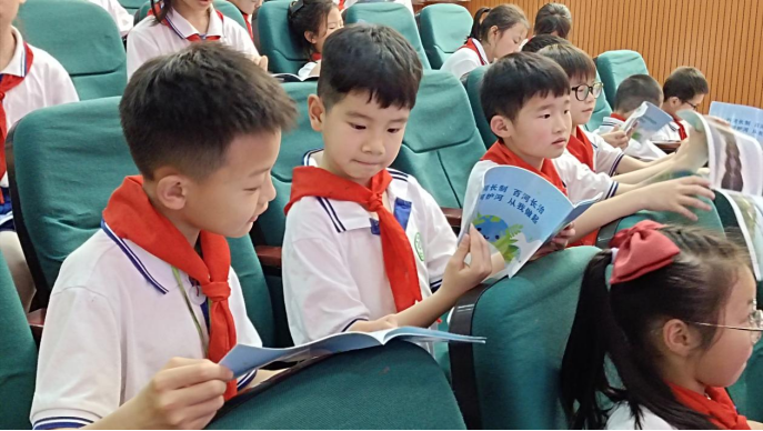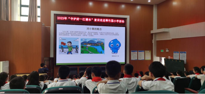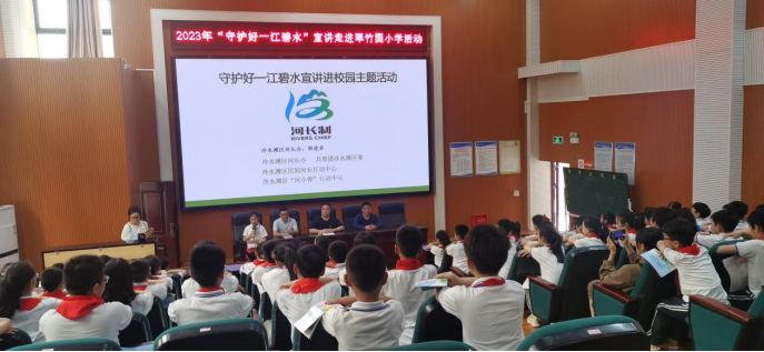4月21日,共青团冷水滩区委、区河长办、区河小青行动中心在翠竹园小学共同开展“守护好一江碧水”宣讲进校园主题活动。