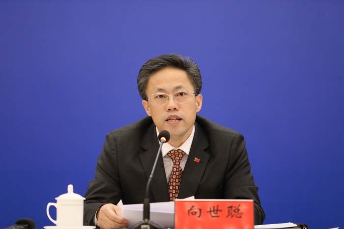 1月19日下午,湖南省人民政府新闻办公室举行新闻发布会,湖南省统计局和国家统计局湖南调查总队联合发布2023年湖南经济社会发展情况和民生调查情况。省统计局党组书记、局长、新闻发言人向世聪在会上发布了2023年我省经济社会发展情况,国家统计局湖南调查总队党组书记、总队长、新闻发言人朱国勇发布了2023年我省民生调查情况。省委宣传部新闻发布处处长覃攀贵主持新闻发布会。向世聪,省统计局党组成员、副局长、新闻发言人李跃辉,以及湖南调查总队党组成员、副总队长、新闻发言人李建伟分别回答了记者提问。