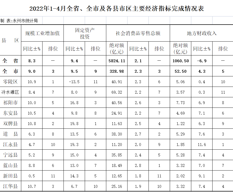 2022年1-4月全省、全市及各县市区主要经济指标完成情况表
