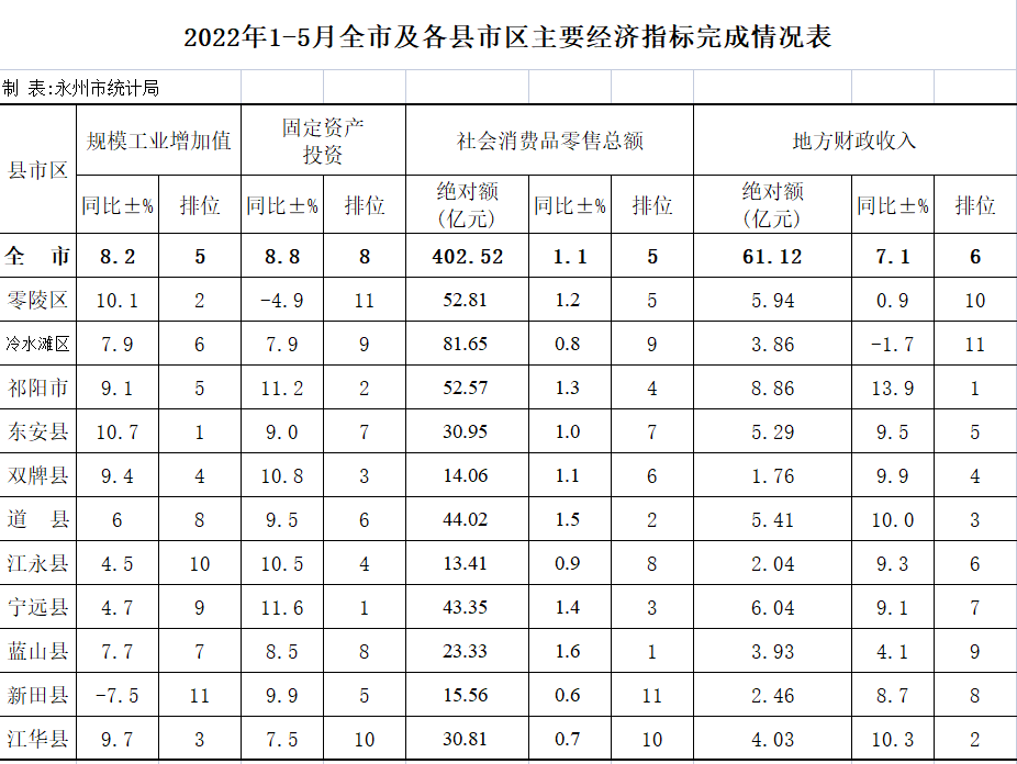 2022年1-5月全市及各县市区主要经济指标完成情况表