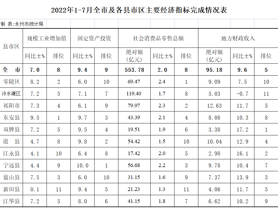 2022年1-7月全市及各县市区主要经济指标完成情况表