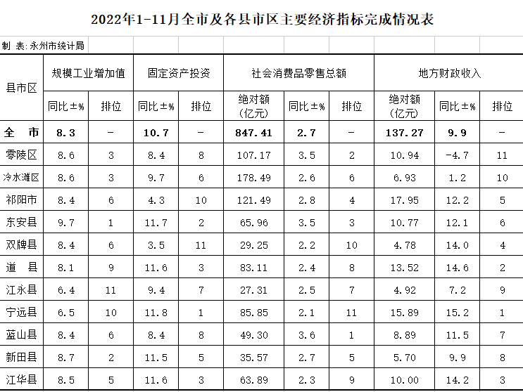 2022年1-11月全市及各县市区主要经济指标完成情况表