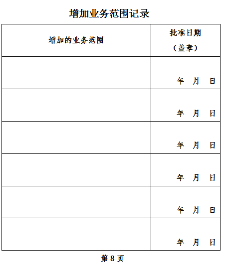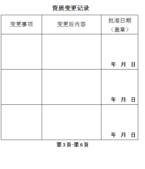 五、副本第3、4、5、6、7、8页,由资质认可机关填写发生资质变更或增加业务范围的情况并盖章。