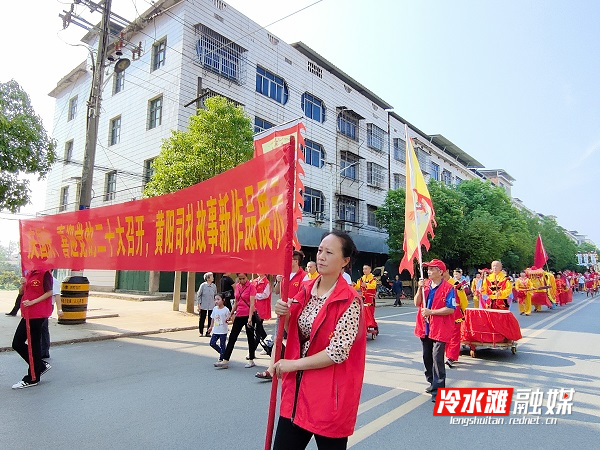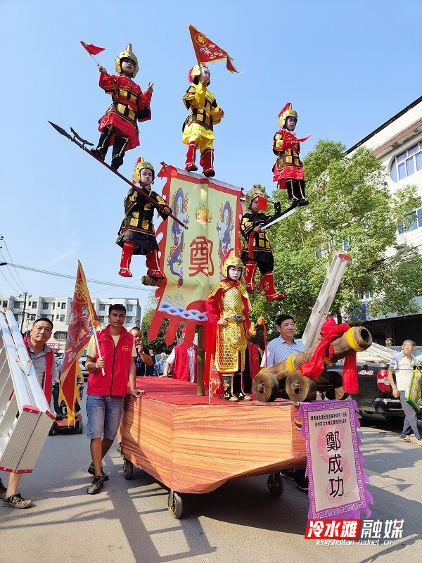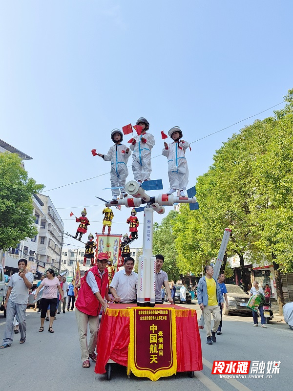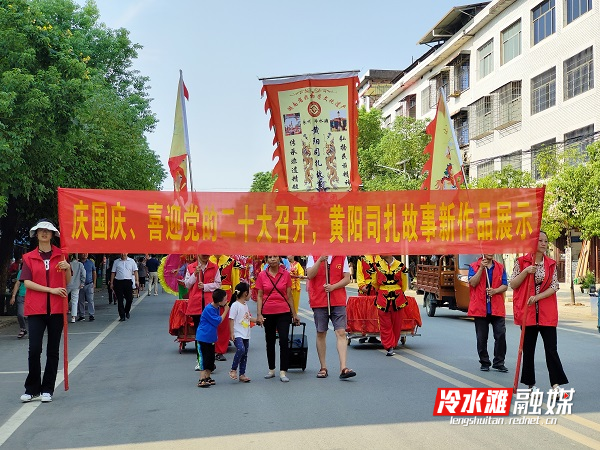 冷水滩融媒9月30日讯(记者 李秋燕 屈文利 通讯员 周丽君)9月30日上午,在冷水滩区黄阳司镇,一场“非遗盛宴”——“黄阳司扎故事”新作品演出活动在沿镇主街精彩呈现。演员们身着特定服装、道具和摆设高低不一的造型,沿镇主街展现新时代作品,剧目设计与时俱进,古老的非遗工艺融合现代技术,吸引了大批百姓追随观看并拍照留念。