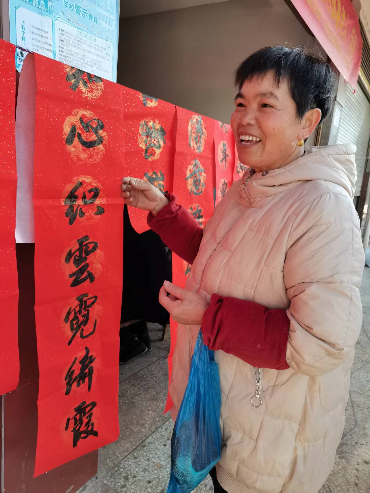 此次书写春联的活动,共送出春联600余副,不仅营造了新春佳节的喜气氛围,同时也扎实推进了文化惠民工程,提升了百姓的幸福感与归属感,让百姓们不仅口袋鼓起来,精神也“富起来”。