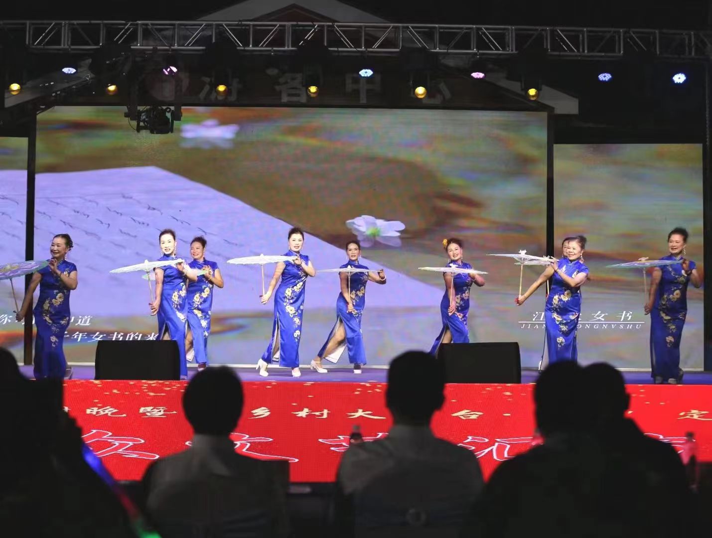首届秋季村晚以“相知“伊家人”、“相亲“伊家人”、“相爱“伊家人”三个篇章为主线,从伊塘伊始,在精彩的开场舞《我和我的祖国》表演中拉开序幕。活动中,乡村走秀《幸福村民农耕秀》、萨克斯三重奏《金风玉露》、民乐合奏《春暮花落雨》《玉楼月》、曳步舞《青春曳步舞串烧》、小品《懒汉脱贫》、祁剧戏歌《乘着丰收的喜悦再出发》等15个节目轮番上演、精彩纷呈,节目里演的是乡亲,说的是乡音,唱的是乡韵,舞的是乡情,线上线下观众万余人次观看,各平台点赞量突破一万。现场观众朋友们齐声叫好,远在他乡的游子在直播屏幕前也泛起了浓浓的思乡之情,充分点燃了伊塘镇的“文化篝火”,给村民们带来了一场充满文娱味、乡土味和时代味的文化盛宴。