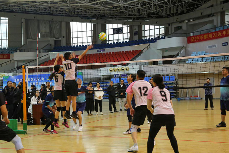 12月5日,永州市冷水滩区2023年区直单位气排球赛在永州市体育馆开赛。来自全区各乡镇、街道办事处、区直各单位共25支代表队近450名气排球爱好者参加。